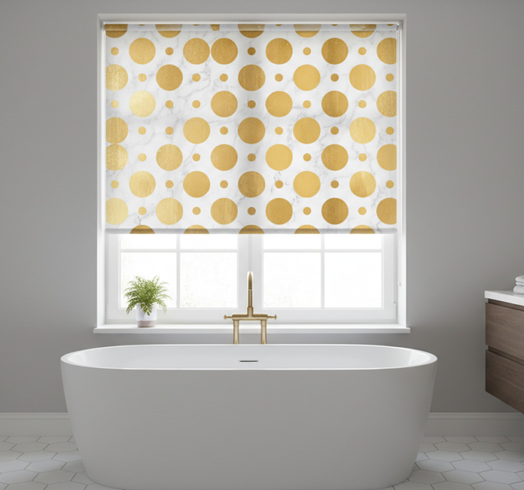 The Bathroom roller blind in gold marble dots bathroom roller blind is an inspirational addition to your bathroom decor! Its luxurious design adds a touch of sophistication and style, making your space feel more inviting. Embracing the beauty of natural marble, this roller blind blends seamlessly with various interior designs, creating a stunning focal point while also offering practical benefits such as light diffusion and privacy. Transform your bathroom into a serene oasis!