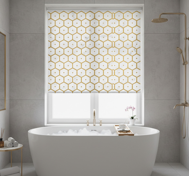 The Bathroom roller blind in hexagonal gold marble pattern bathroom roller blind is not just a functional window treatment; it is an artistic statement! This roller blind elevates your bathroom's aesthetic, bringing a sense of luxury and style. Its unique design brightens the space, enhances your decor, and creates a serene atmosphere that inspires relaxation. Imagine unwinding in a beautifully adorned bathroom where every detail reflects your refined taste!