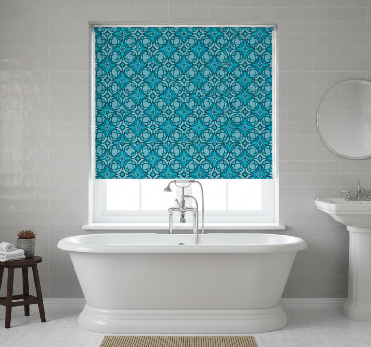 - Bathroom roller blind with geometric decorative design