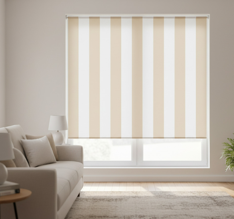Beige roller blind in white and beige colors