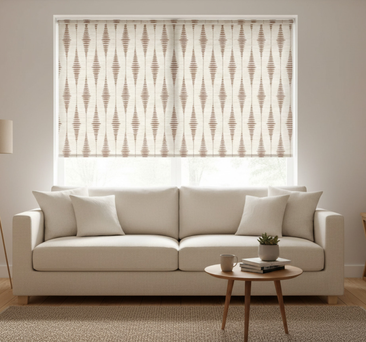 Reference: E8127The Beige roller blind mocha mousse rabaul ikat features a beautifully intricate ikat pattern that seamlessly blends traditional artistry with modern functionality. This roller blind boasts a chic beige color, creating a warm and inviting atmosphere in any room. The design incorporates elegant mocha tones, offering a sophisticated touch that enhances your interior decor.