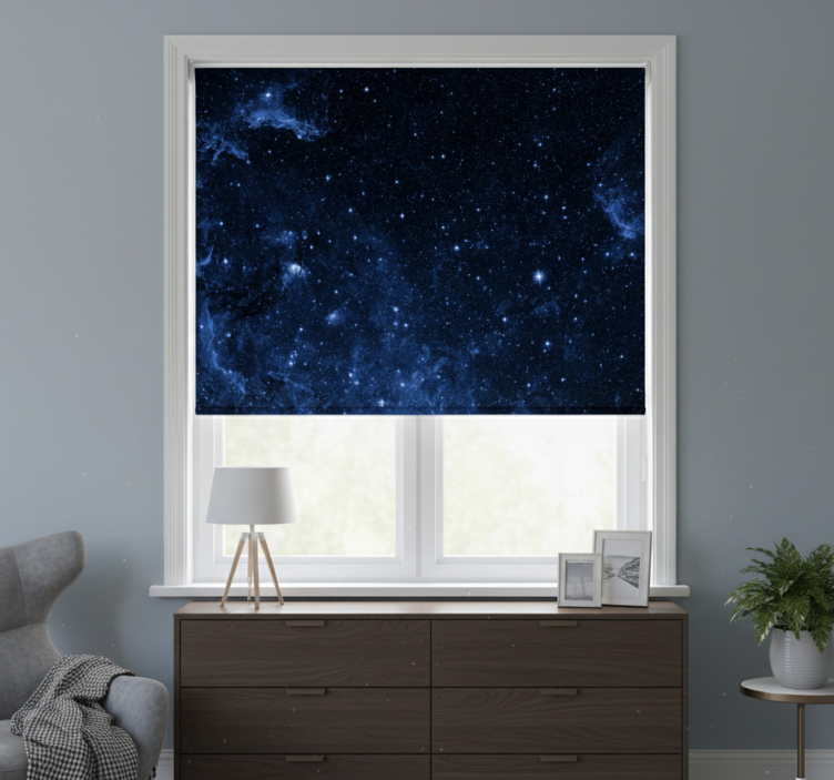 Reference: E8730Transform your space with our Black roller blind galaxy bedroom wall mural constellations, a stunning design that features a mesmerizing pattern of twinkling stars and celestial bodies. This visually striking mural not only enhances the aesthetic appeal of your room but also incorporates easy assembly in just two clicks, ensuring a hassle-free setup. Its easy-to-clean surface means you can maintain its beauty effortlessly, while the ability to disassemble it in two clicks allows for quick cleaning of your windows and surroundings. Additionally, it protects your room from harsh sunlight, provides privacy when lowered, and helps regulate room temperature, making it a perfect addition to your home!