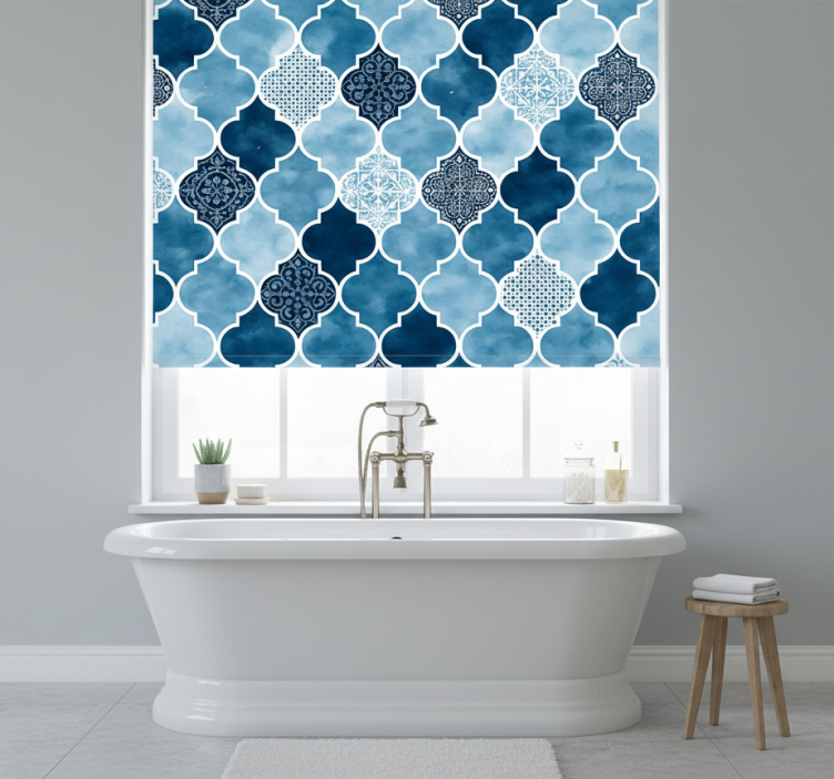 Reference: E8988Introducing our stunning Blue roller blind blue watercolor moroccan, a perfect blend of contemporary design and artistic flair! This roller blind features a beautiful watercolor pattern inspired by Moroccan art, offering a unique aesthetic that transforms any room. The soothing blue tones create a tranquil atmosphere, while the intricate design adds a touch of elegance. With easy assembly and disassembly in just two clicks, this roller blind is not only visually appealing but also practical, allowing for quick cleaning of your windows and surrounding areas. Experience the ideal balance of style and functionality!