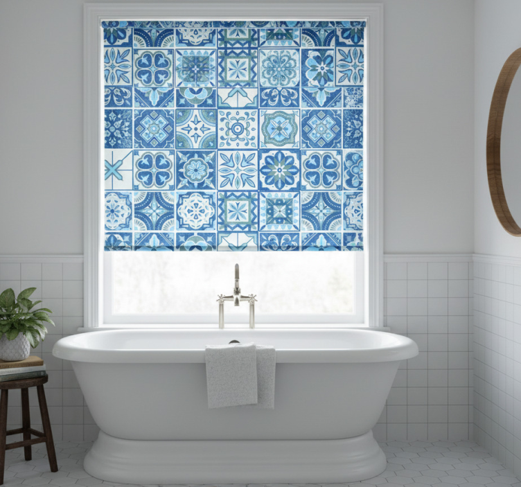 Reference: E8995Introducing our stunning Blue roller blind in talavera blue design, a perfect blend of style and functionality! This exquisite roller blind features intricate talavera patterns in vibrant blue hues, creating a captivating visual impact that enhances any room's aesthetic. The design beautifully balances elegance with practicality, making it a must-have for your home. With easy assembly and disassembly in just two clicks, this blind is not only a decorative element but also a practical solution that protects your space from direct sunlight while providing privacy when lowered.
