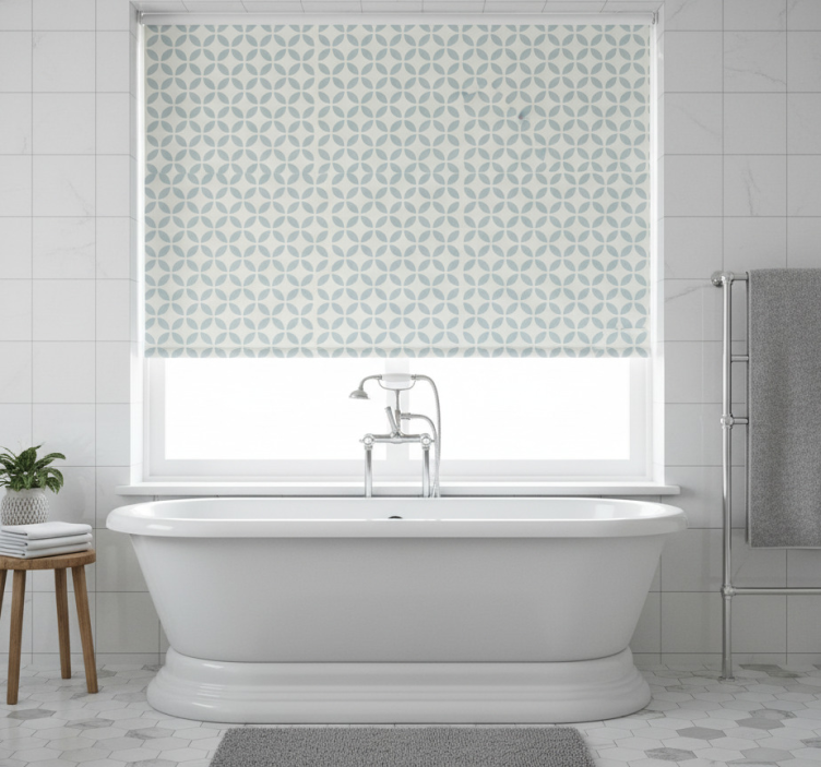 Blue roller blind with circular patterned design