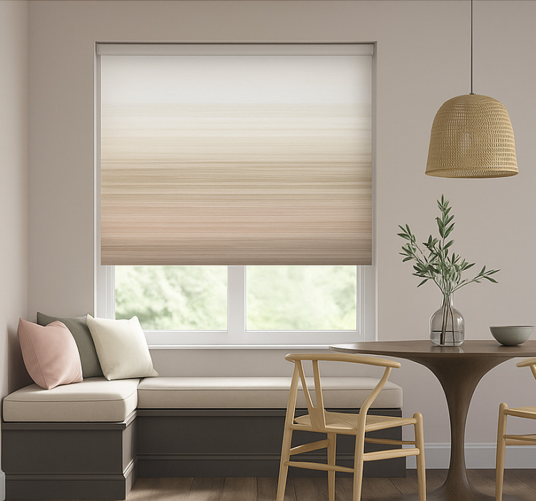 Reference: E5889Transform your dining space with our Earthy natural tones dining room roller blind, featuring stunning earthy hues that effortlessly blend with any decor style. This roller blind is designed with easy assembly in 2 clicks, easy cleaning, and quick disassembly, allowing you to maintain a perfect ambiance with minimal effort. Protect your home from direct sunlight while ensuring privacy and regulating room temperature, all while enhancing the aesthetic appeal of your space!