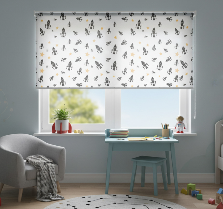 The Children room roller blind black rockets children room roller blind is an exceptional choice for decorating your child's space. Its whimsical design fosters creativity and joy, making it an inspiring addition to any room. Children will love the playful depiction of rockets, which can spark their imagination and encourage dreams of space adventures. This roller blind not only enhances the room's aesthetic but also provides essential privacy and light control, making it a perfect blend of functionality and style!