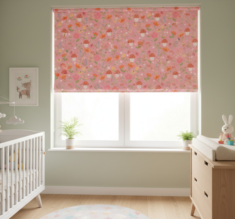 The Children room roller blind floral mushroom design children room roller blind is an ideal choice for enhancing your child’s decor. Its charming design brings warmth and cheerfulness to the space, making it a delightful retreat for your little one. Children are naturally drawn to bright colors and playful themes, and this roller blind beautifully combines both, transforming an ordinary room into an extraordinary haven of creativity and comfort!