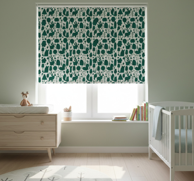 Reference: E6915Transform your child's space with our stunning Children room roller blind forest animal silhouettes. This enchanting design features delightful silhouettes of forest animals, creating a whimsical atmosphere that sparks imagination and joy. The combination of playful imagery and functionality makes this roller blind a perfect addition to any children's room, allowing natural light to filter in while maintaining privacy and comfort.