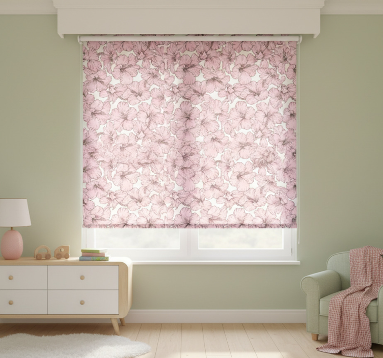 Children room roller blind pink hibiscus flower pattern