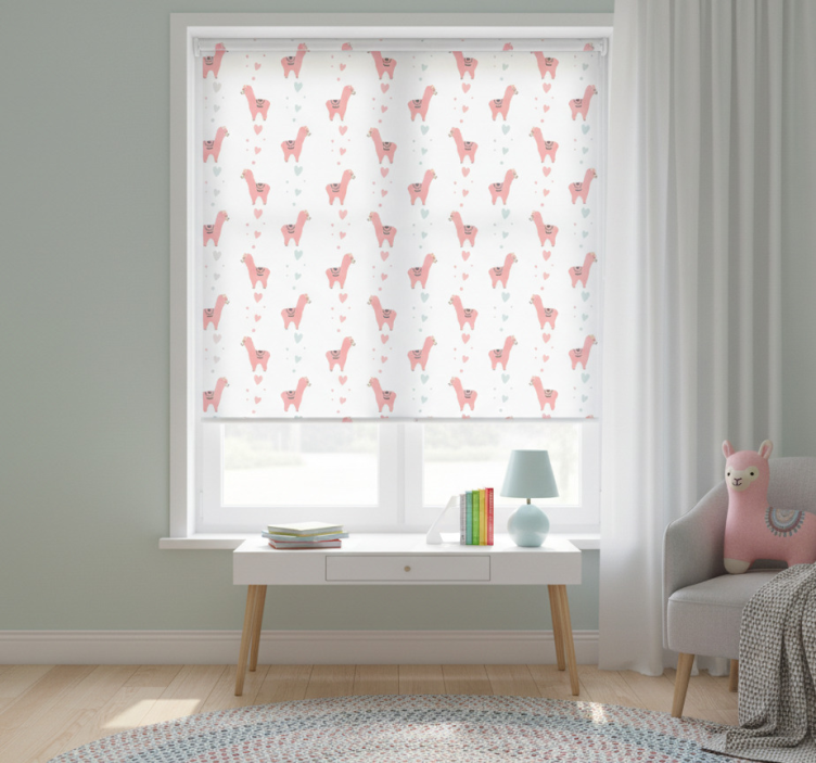 Children room roller blind pink llama pattern