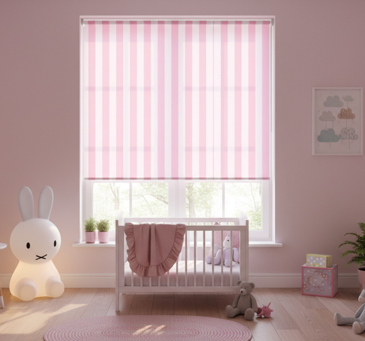 Children room roller blind pink striped design