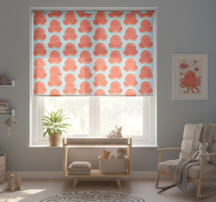 Reference: E6884Transform your child's space with our Children room roller blind red octopus design, a delightful addition that will spark imagination and joy! Featuring a playful red octopus design, this roller blind combines whimsical graphics with functionality. Its vibrant colors and charming sea creature motif will brighten up any room, creating a cheerful atmosphere your little ones will adore. This roller blind not only looks stunning but also offers easy assembly in just 2 clicks, easy cleaning, and easy disassembly, making maintenance a breeze!