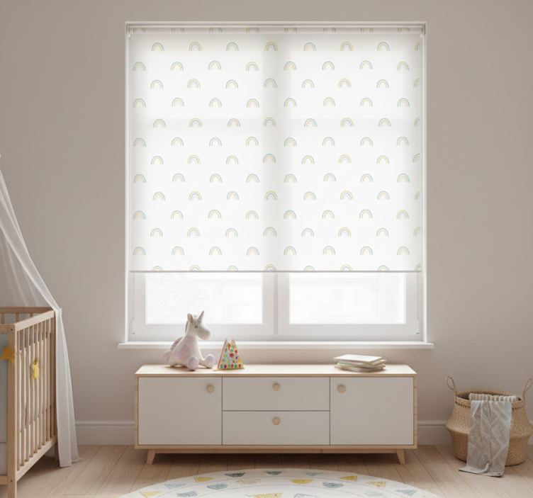 Our Children room roller blind scattered pastel rainbows children room roller blind is an essential piece for any child’s room decor. It not only adds a splash of color but also enhances the overall aesthetic by creating a cheerful and inviting environment. Imagine your child's delight every time they see those playful rainbows, inspiring joy and creativity in their daily activities. This roller blind is designed to elevate the entire room, making it a perfect choice for parents who want to create a magical space!