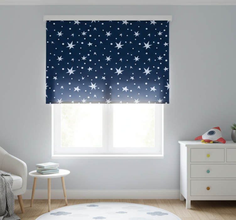 Our Children room roller blind stars on navy blue children room roller blind is a fantastic choice for decorating your child's room. Its enchanting star pattern sparks creativity and wonder, making it a perfect addition to inspire dreams and imaginative play. By incorporating this beautiful blind, parents can effortlessly enhance the room's aesthetic, creating a cozy and inviting space that children will love!