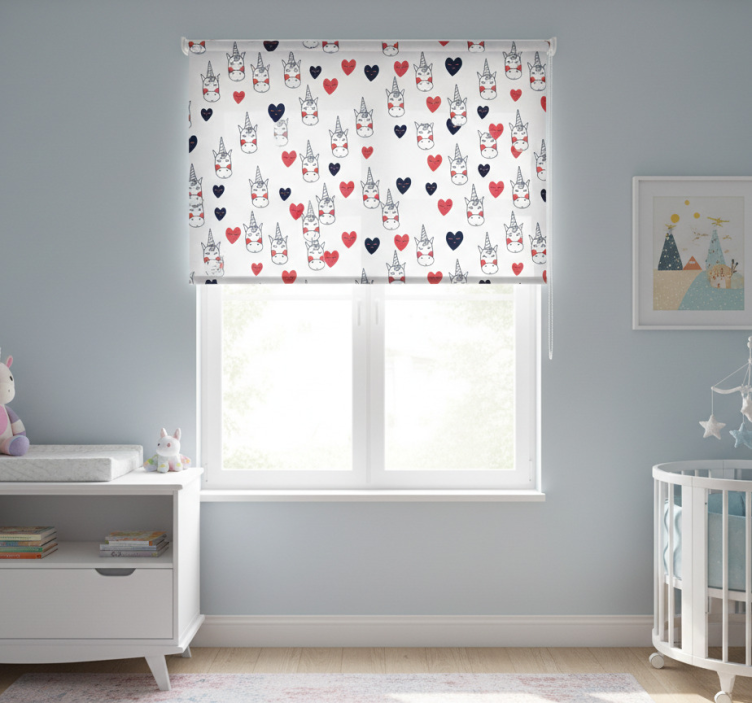 Children room roller blind unicorn pattern with hearts