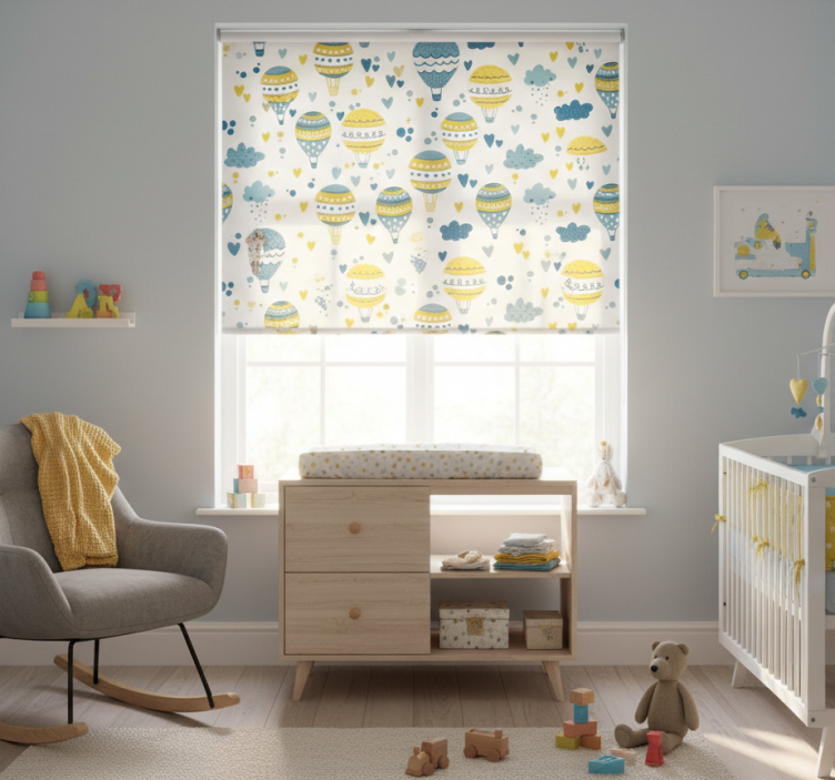 The Children room roller blind with blue and yellow balloons children room roller blind is more than just a functional window covering; it is a statement piece that enhances the overall aesthetic of your child's room. Its whimsical design inspires creativity and joy, making every day feel special. By incorporating this charming roller blind, you create a warm and inviting space that encourages play and relaxation, making it a must-have for your child's decor!