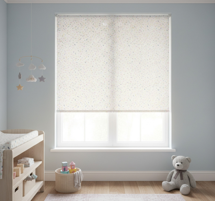 Reference: E7001Transform your child's space with our Children room roller blind with colorful sprinkles design! This enchanting design features vibrant sprinkles in a delightful array of colors, creating a fun and imaginative atmosphere. The playful pattern not only captures attention but also sparks creativity, making it the perfect addition to any child's room. With easy assembly, effortless cleaning, and the ability to regulate room temperature, this roller blind combines functionality with style!