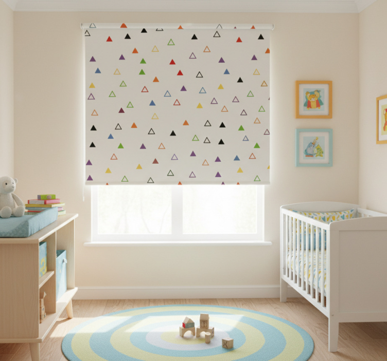 The Children room roller blind colorful hollow triangles children room roller blind is not just a window covering; it’s a statement piece for your child’s sanctuary! This delightful roller blind enhances the aesthetic of the room, creating a cheerful atmosphere that inspires play and creativity. Its unique design not only beautifies the space but also serves practical purposes like blocking out sunlight and providing privacy. Make your child’s room a vibrant retreat with this charming addition!