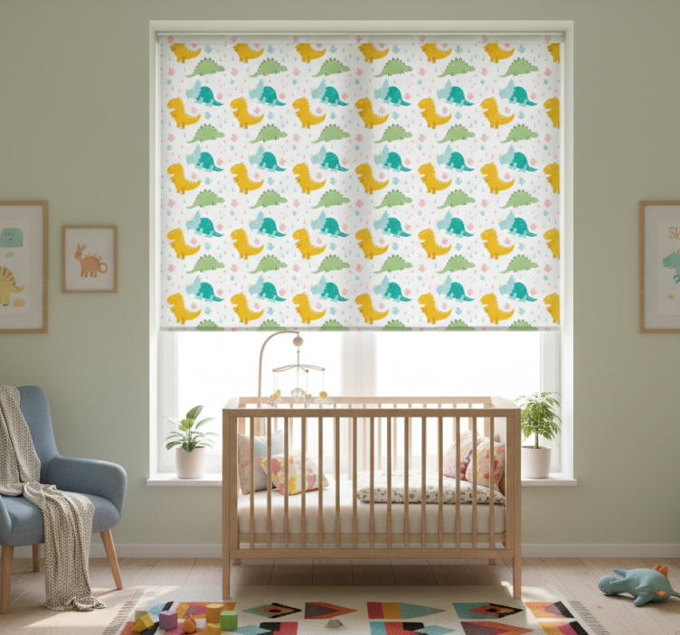 Reference: E7061Transform your child's space with our Children room roller blind with cute dinosaur design, featuring delightful graphics of adorable dinosaurs in vibrant colors. This charming design not only captivates young imaginations but also enhances the overall decor of the room. Its playful visual appeal instantly brings joy, making it the perfect addition to a child's bedroom!