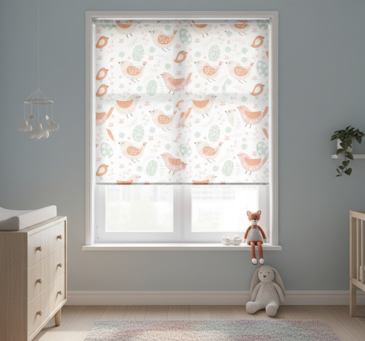 Reference: E7007Transform your child's space with our stunning Children room roller blind minimalist nordic birds. This beautifully designed roller blind showcases a whimsical array of birds amidst a serene, minimalist backdrop, perfect for creating a calming atmosphere in any children's room. Its contemporary Nordic aesthetic not only enhances the decor but also brings a touch of nature indoors. The roller blind features easy assembly in just two clicks, effortless cleaning, and a practical design that protects the room from direct sunlight while ensuring privacy when lowered. It's a simple yet effective solution to improve the overall look and feel of your child’s space!
