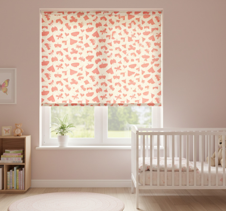 Children room roller blind with pink butterfly pattern