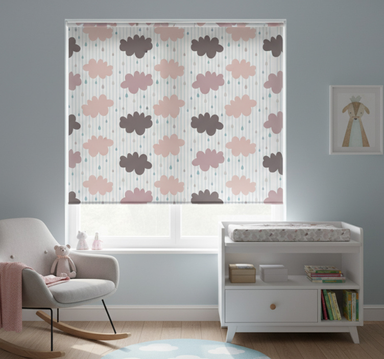 Reference: E6794Transform your child's space with our Children room roller blind with pink rainy clouds. Featuring whimsical pink rainy clouds set against a soft backdrop, this roller blind brings a touch of dreamy charm and cheerfulness to any child's room. The delightful design not only adds a decorative flair but also serves practical purposes, making it an ideal choice for parents looking to create a cozy and inviting environment.