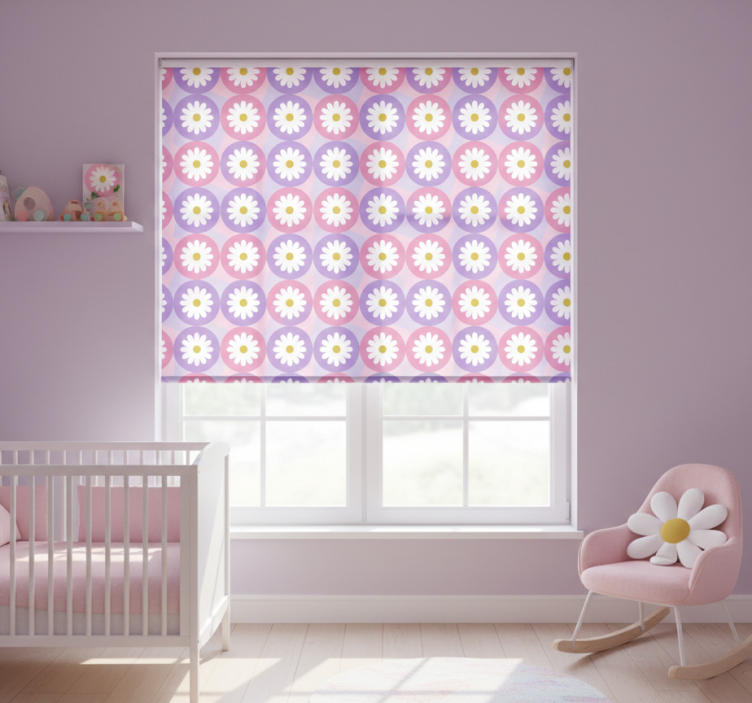 Children room roller blind with purple pink daisy pattern