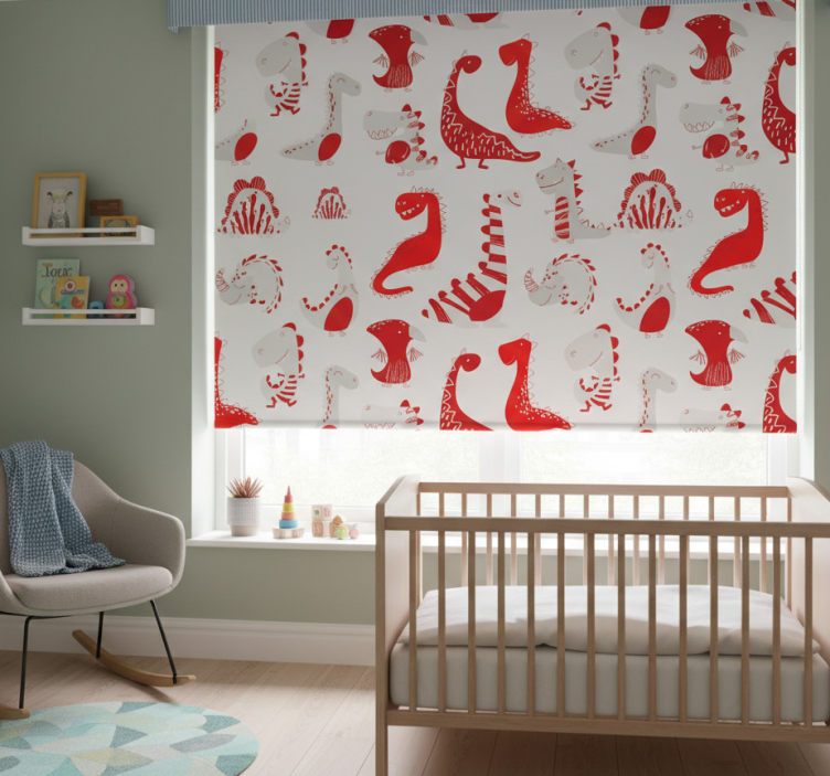 Reference: E7146Introducing our vibrant Children room roller blind with red dinosaur sketches, designed to spark joy and creativity in your child's space! This delightful roller blind features playful red dinosaur sketches against a soft backdrop, making it a perfect addition to any children's room. With its easy assembly in two clicks, easy cleaning capabilities, and the ability to protect the room from direct sunlight, this roller blind combines functionality with fun. Not only does it provide privacy when lowered, but it also helps regulate room temperature while adding a whimsical touch to the decor!