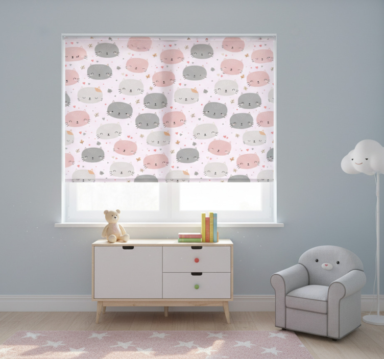 The Cute grey and pink kittens children room roller blind is a beautiful solution for enhancing your child's room decor. Its charming design captivates the heart and brings smiles every day! By incorporating this roller blind into the room, you can transform the atmosphere into a cheerful haven while ensuring practicality. It seamlessly combines style and function, making it an ideal choice for parents who want to create a delightful environment for their little ones!