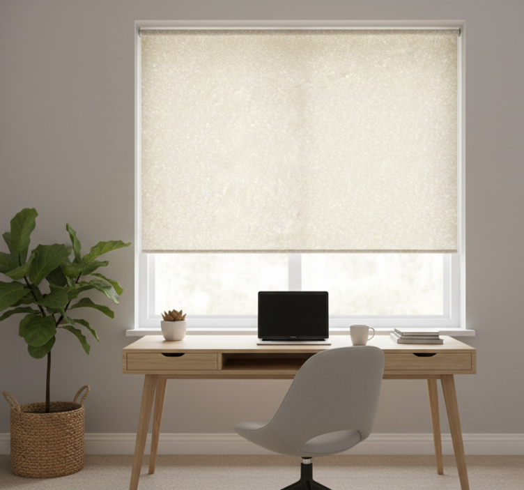 Delicate beige and white home office roller blind
