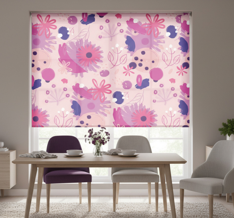 - Dining room roller blind abstract purple flowers