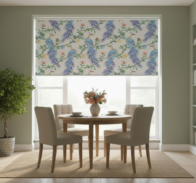 Dining room roller blind birds in paradise