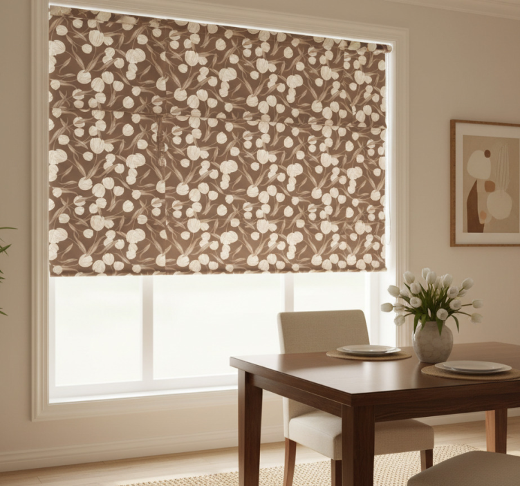 Transform your dining area with the Dining room roller blind elegant beige tulips pattern dining room roller blind. This exquisite blind is not just a functional piece; it’s a decorative element that breathes life into your room. The beautiful tulip design complements various interior styles, making it an ideal choice for those looking to elevate their home decor. Imagine hosting family and friends in a space that radiates elegance and warmth, all thanks to this stunning roller blind!