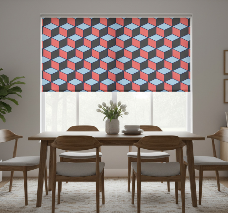 Elevate your home’s charm with the Dining room roller blind geometric squares 3d dining room roller blind. This decorative piece not only enhances the visual appeal of your dining room but also complements various interior styles, from modern to classic. The geometric design inspires a sense of elegance, making every meal a delightful experience while providing essential privacy and light control!