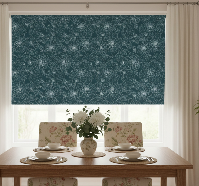 Reference: E6572Introducing our stunning Dining room roller blind grandmillenial white flowers, a perfect blend of elegance and functionality! This roller blind features a charming floral design that brings a touch of nature indoors, creating a serene atmosphere. Its soft white background enhances the beauty of the intricate floral patterns, making it a delightful addition to any dining space. Enjoy how it not only protects the room from direct sunlight but also provides privacy when lowered, allowing you to dine in peace!