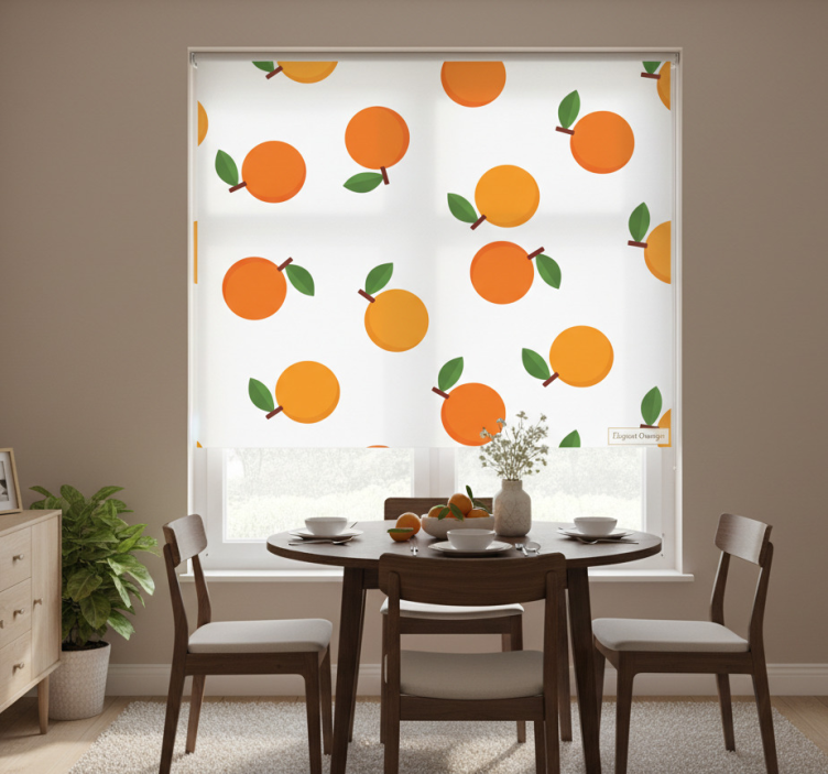 The Dining room roller blind in elegant oranges dining room roller blind is not just a window covering; it’s a statement piece that brings warmth and vibrancy to your living space. Imagine hosting friends and family while the beautiful orange hues of this roller blind create a cozy and inviting atmosphere. This product enhances your interior design, making it a must-have for anyone looking to elevate their home décor. Let the elegance of this roller blind inspire you to create a stunning dining environment that reflects your unique style!