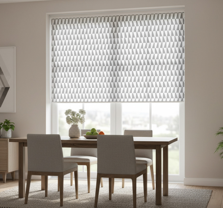 The Dining room roller blind in gray triangles dining room roller blind is more than just a functional window covering; it's a statement piece that enhances your decor. The modern design complements various interior styles, bringing a touch of sophistication to your dining room. By choosing this roller blind, you create a warm and inviting atmosphere for family gatherings and entertaining guests, all while enjoying the benefits of privacy and light control!