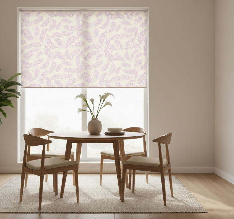 - Dining room roller blind in pink and beige tropical style