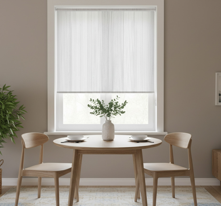 Dining room roller blind in white wood design
