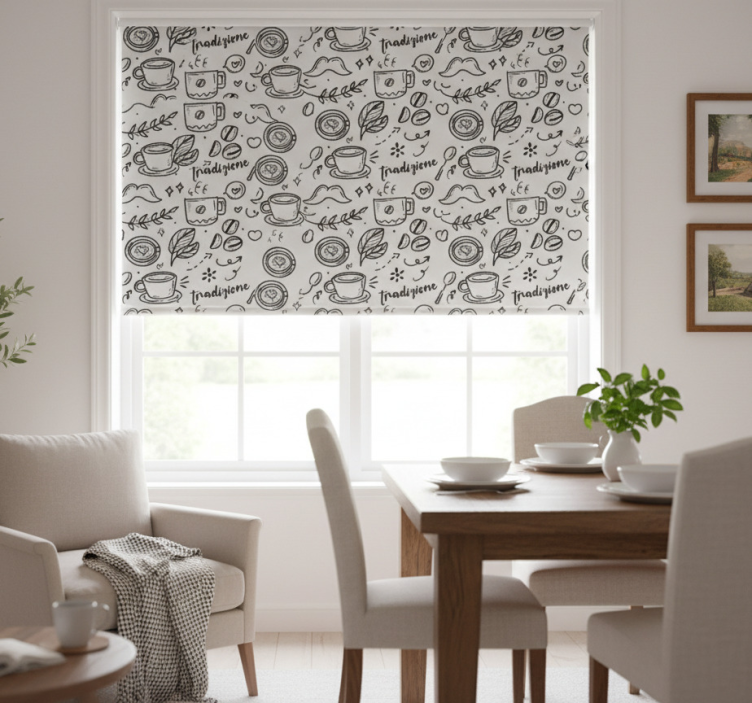 The Dining room roller blind italian coffee tradition dining room roller blind is an essential addition to your home décor. It transforms your dining area into a captivating space that reflects your personal style and love for coffee culture. Imagine sharing meals with loved ones under the soft glow of filtered light, all while enjoying the privacy and comfort this roller blind provides. Elevate your dining experience and create delightful memories with this exquisite piece!