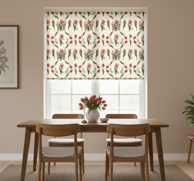 Dining room roller blind spring with red tulips
