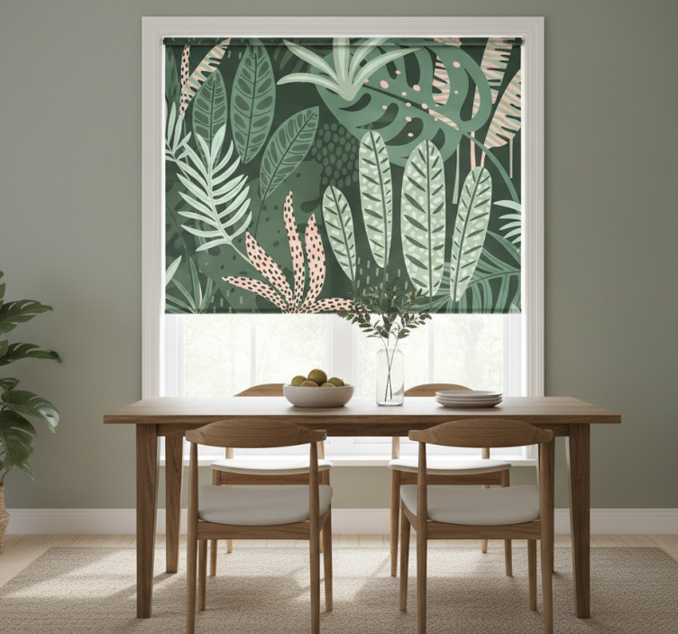 Incorporating the Dining room roller blind tropical palm vibes dining room roller blind into your decor is an inspiring way to elevate your dining area. The lively palm design adds a touch of the exotic, creating an atmosphere that invites relaxation and joy. With its ability to enhance any interior style, this roller blind serves as a decorative statement that reflects your personality and love for nature. Imagine hosting friends and family in a beautifully adorned space that embodies comfort and elegance!