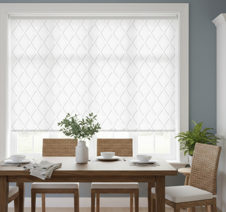 Dining room roller blind with 3d diamond hamptons pattern