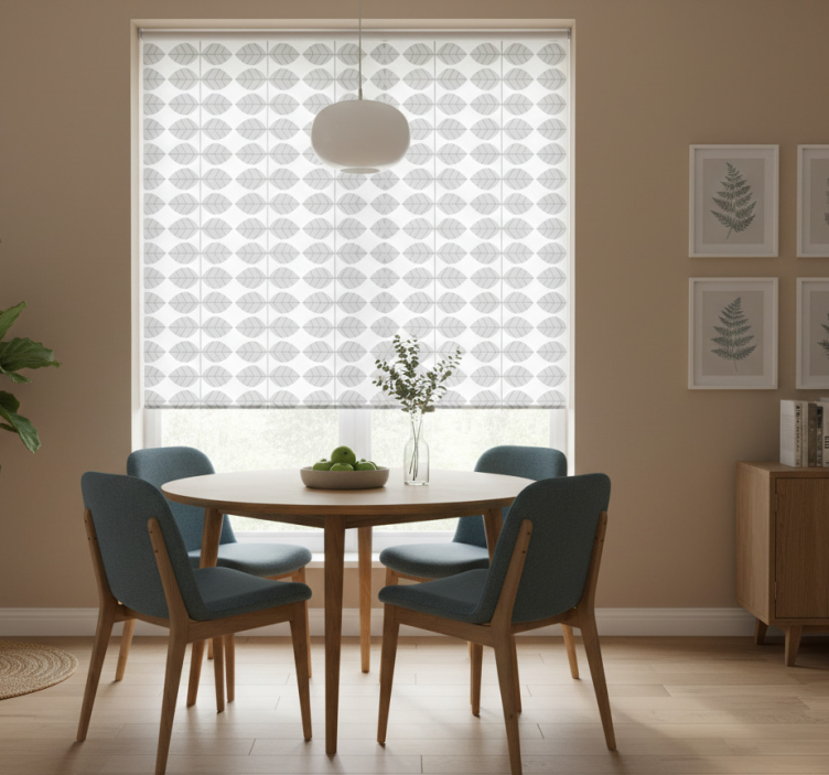 Dining room roller blind with elegant leaf design