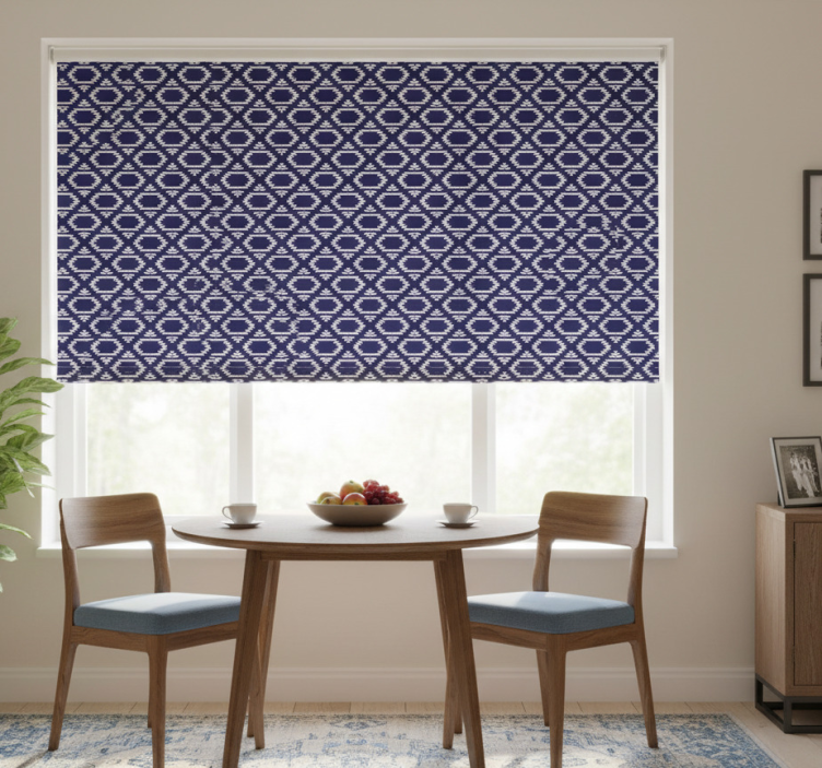Dining room roller blind with geometric hexagons