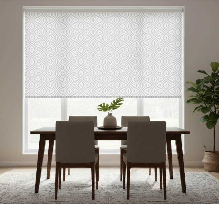 The Dining room roller blind with geometric spiral design dining room roller blind is a perfect choice for those looking to elevate their home decor. Its unique geometric spiral design not only captivates the eye but also complements various interior styles, making it a versatile addition to any dining space. With its ability to enhance your room’s aesthetic while providing essential privacy and light control, this roller blind inspires creativity and transforms your dining experience!