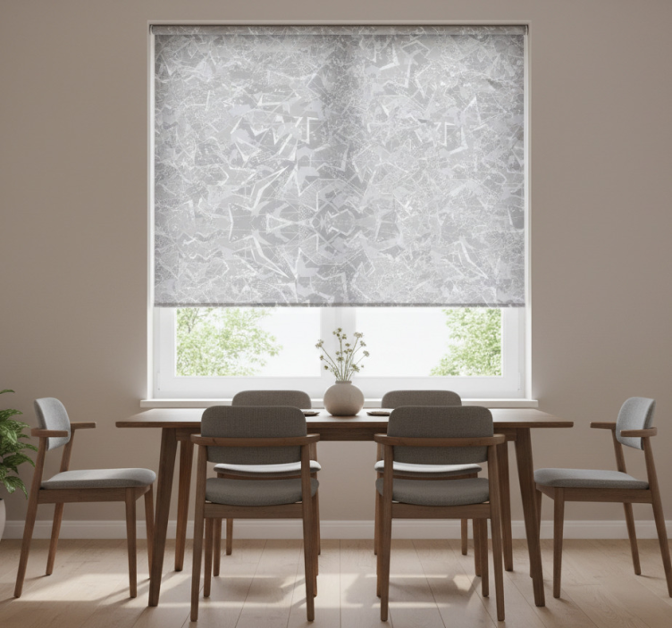 Dining room roller blind with gray 80's fine graphics