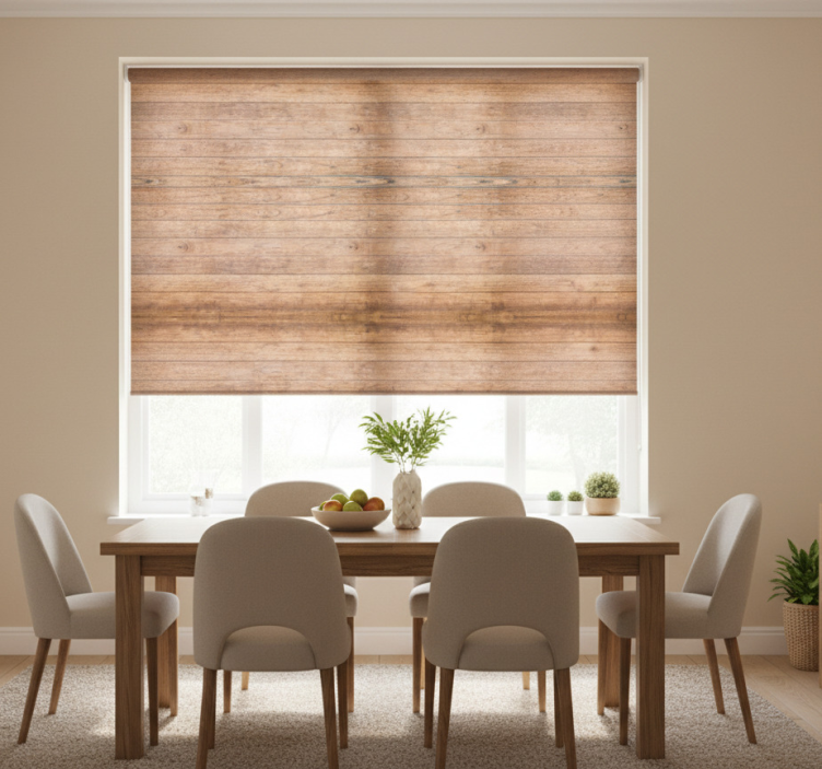 Dining room roller blind in horizontal rustic wood