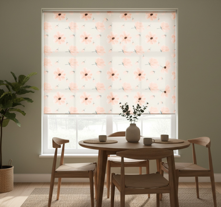 Dining room roller blind with large floral watercolor design